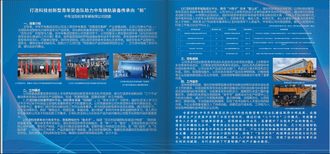 该模式案例细致引见了公司通过组建科技立异型青年突击队,合力鞭策公司拳头产物——长钢轨车组智能化升级和谱系化产物研发取得的立异。公司党委指点公司共青团贯彻落实团地方《深化科技立异青年突击队扶植的工做方案》要求,组建由青年手艺专家领衔、青年技术协同的科技立异型青年突击队,公司党委、董事长亲身为突击队授旗,公司团委担任人世接联系青年突击队开展工做。通过打制“三个平台”工做模式,无效整合青年人才资本,打破单元壁垒,实现跨域合做攻关,帮力公司长轨车产物的智能化、谱系化和模块化成长,实现了手艺立异取人才成长的同频共振,为公司高质量成长注入了芳华动能。