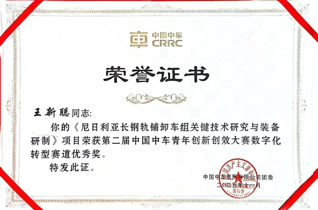 本届大赛以“芳华为加速建成自从立异高地挺膺担任”为从题,设置“数字化转型、绿色低碳成长、人工智能使用”三个赛道,最终评选出一等项目6个、二等项目9个、三等项目15个、优良项目24个。大赛还搜集到青年科技论文165篇,评选出一等3篇、二等6篇、优良12篇。中车沈阳公司设备分公司青年立异项目《尼日利亚长钢轨铺卸车组环节手艺研究取配备研制》荣获大赛数字化转型赛道优良;中车沈阳公司“薪火逐梦”铆焊青年立异创效工做室《铁货运车辆车体扭曲变形调修手艺研究》荣获大赛青年科技论文优良。
